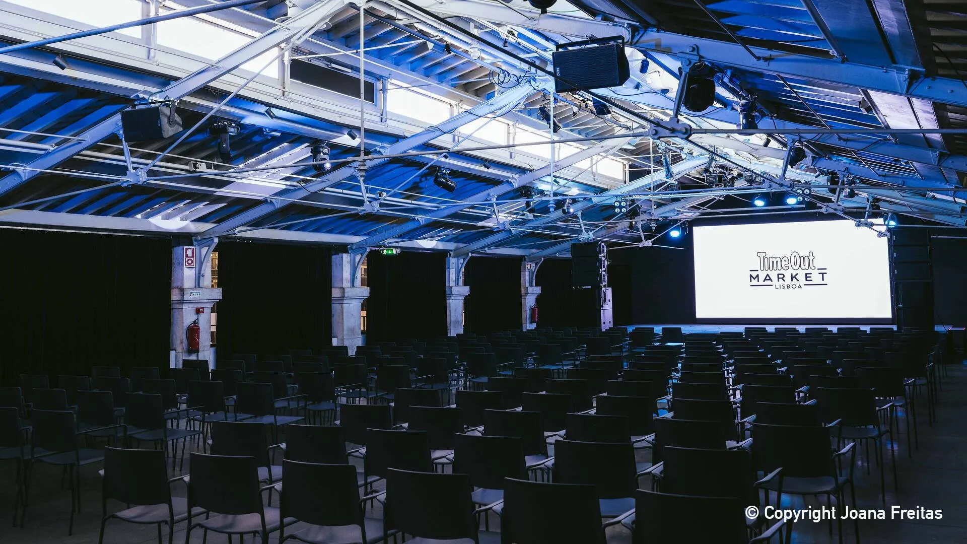 Housed within Lisbon’s historic Mercado da Ribeira, the Time Out Studio is a contemporary arts and events space at the heart of the city. Part of the renowned Time Out Market Lisboa, it blends modern design with historic surroundings, providing a distinctive setting that celebrates Lisbon’s creativity, culture, and vibrant community life. Just below the studio, the market’s food court remains open until midnight, offering a lively selection of dining options.